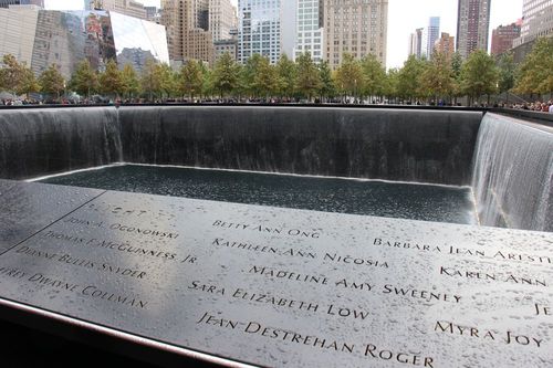 Ensuite on se rend au World Trade Center Mémorial. C’est très très impressionnant et émouvant. A la place des deux tours, ils ont créé des fontaines dans les fondations des tours. Et tout autour, les noms des victimes sont gravés.