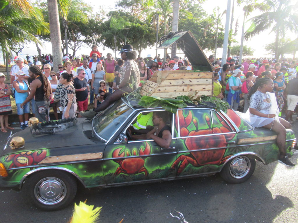 Vidé en rouge et noir, la journée des diables rouges. Une marée humaine en rouge et noir se retrouve dans les rues de Fort de France pour danser au rythme des musiques des groupes à pied. Encore une fois, tout le monde joue le jeu du code vestimentaire. L’effet est impressionnant… Il est possible de suivre l’un des groupes pendant le vidé pour vivre le carnaval au cœur de l’événement ! Avec les enfants, on a préféré se poster sur un trottoir et admirer les déguisements.
