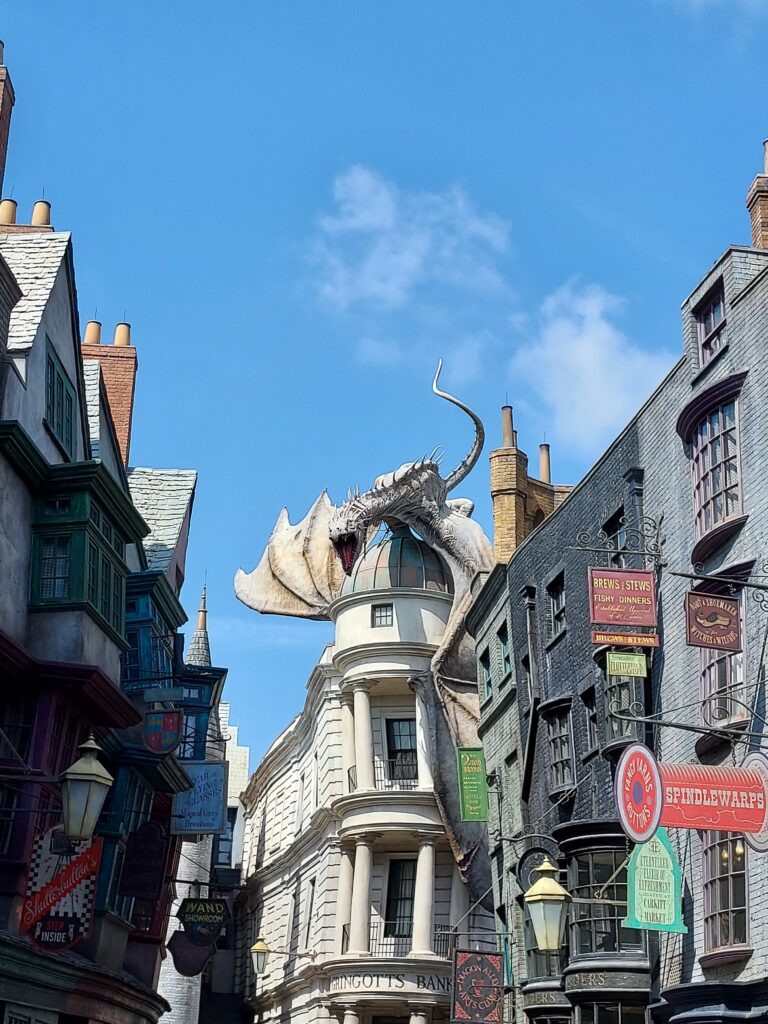 Si vous êtes fan d’Harry Potter comme nous, on vous conseille pour le premier jour de commencer par le parc original Universal Studios. Ensuite essayer si possible de vous rendre rapidement vers le fond du parc pour tout de suite découvrir le quartier du chemin de Traverse (Diagon Alley) et prendre le Poudlard Express depuis le quai 9 3/4.