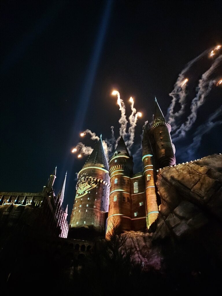 Pré au Lard est une nouvelle immersion incroyable dans le monde magique d’Harry Potter. On y trouve plusieurs belles attractions : Flight of the Hippogriff, avec Buck, Harry Potter and the forbidden Journey au cœur du château. La file d’attente en elle-même est magnifique puisque l’on sillonne à travers les différentes pièces du château. Puis nous avons terminé en beauté lors de notre dernier jour par l’attraction que nous qualifierons sans hésiter de meilleure de tous les parcs jamais faits : celle des motos d’Hagrid ! Chaque jour, il y avait entre 2 et 3h d’attente mais nous avons réussi à trouver un moment affiché à 60 minutes ! Et c’était un grand huit incroyable plein de surprises que nous ne spoilerons pas 🤩.